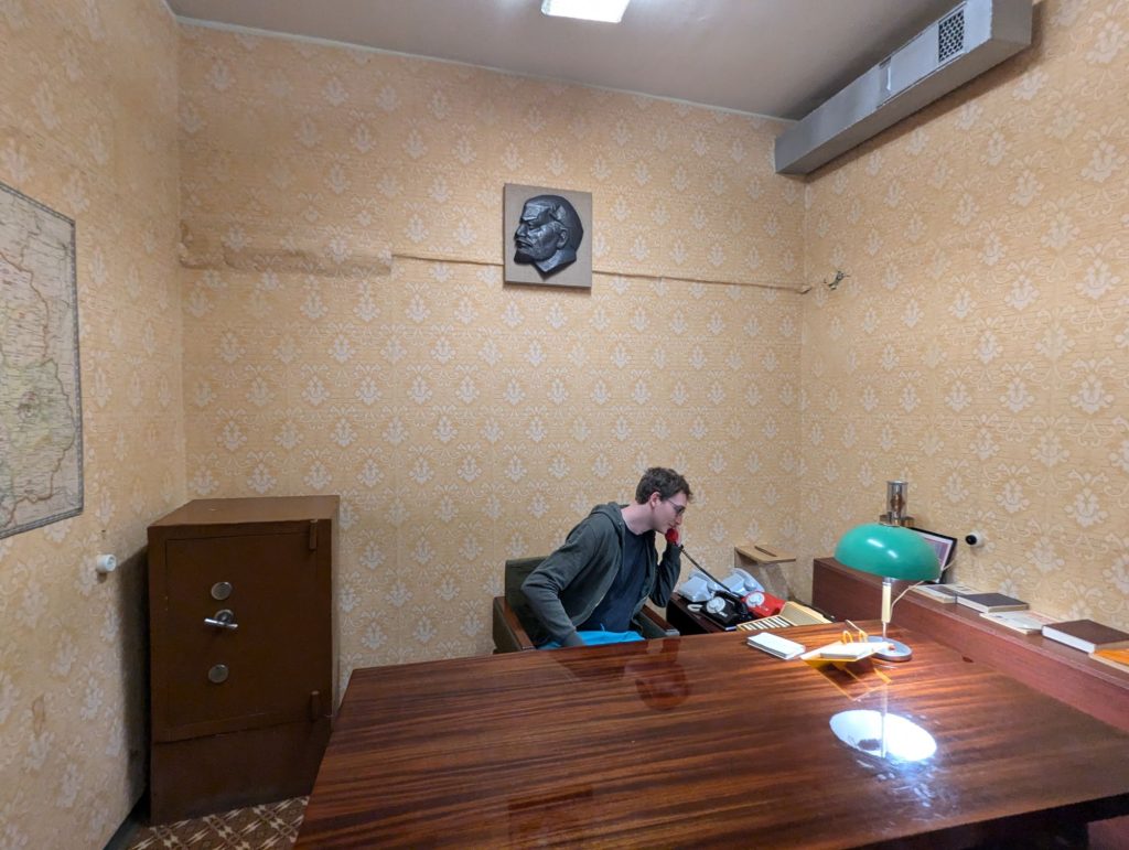 Der Guide konnte uns zwar nicht überzeugen, da offenbar nicht viel über die Hintergründe des Bunkers bekannt ist und er daher eher wenige sichere Fakten beisteuern konnte, aber dafür war der Ort an sich ein besonderes Erlebnis. Wir konnten am Schreibtisch der wichtigsten Personen sitzen, die damals modernen Computer und geheime Kommunikationstechnik bestaunen, die Pläne für den Ernstfall sehen und sogar in der Kantine ein typisches sowjetisches Bunkeressen testen. Auf 2.000 Quadratmetern war alles dafür vorbereitet, 3 Monate abgeschottet zu verbringen.