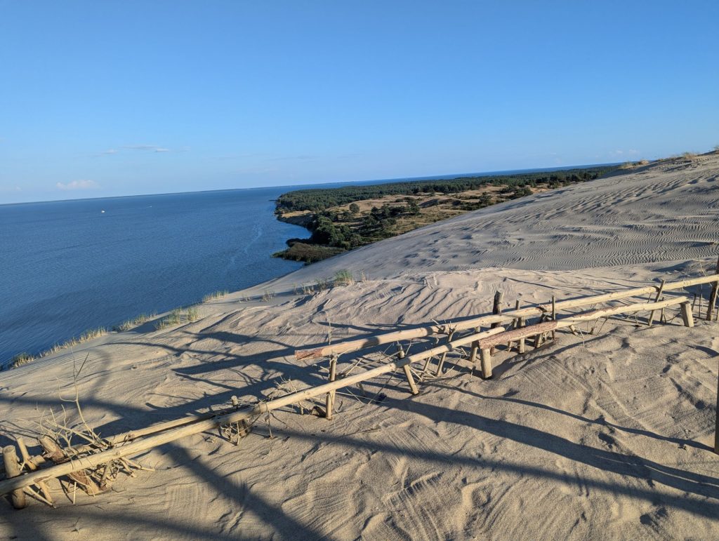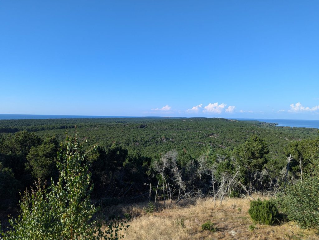 Zuletzt stand für heute dann noch die „Tote Düne“ auf dem Programm. Den Namen hat die ehemalige Wanderdüne erhalten, da die Düne erst einige Orte „verschlungen“ hat bevor die Menschen sie durch das gezielte Pflanzen von Bäumen „getötet“ haben. Mittlerweile wandert die Düne also nicht mehr. Auch hier hat sich die Wanderung zum Gipfel gelohnt und der Blick war wunderschön.