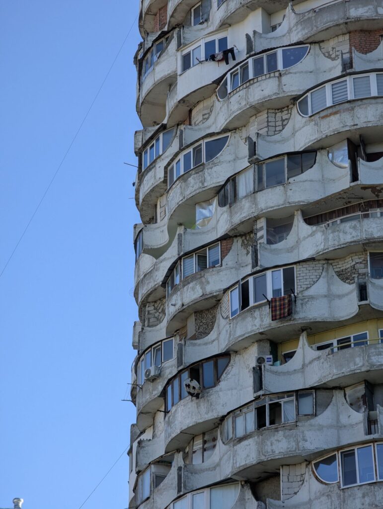 Am nächsten Morgen fuhren wir dann zum „Romanita Collective Housing Tower“, dieses auffällige Gebäude ist 77 Meter hoch und wurde zwischen 1978 und 1986 gebaut. Die Optik des Turms sollte an eine Blume erinnern, aber ohne Modernisierungsmaßnahmen wird der markante Bau wohl weiter zerfallen und die etwa 165 Wohnappartments unbewohnbar werden.