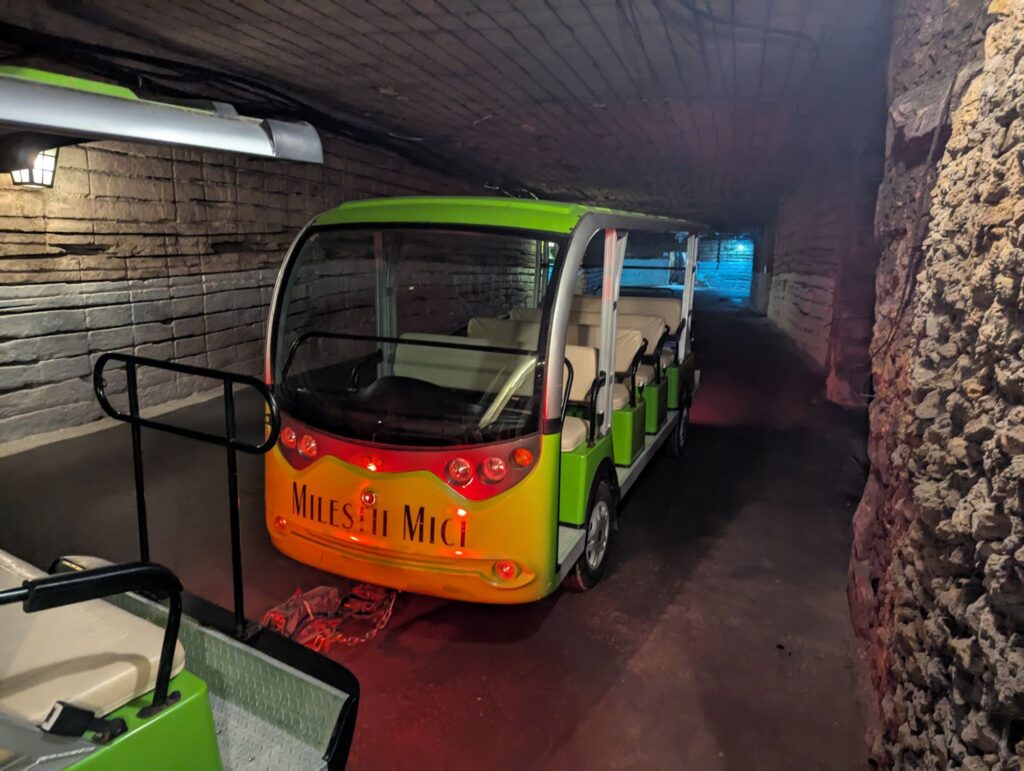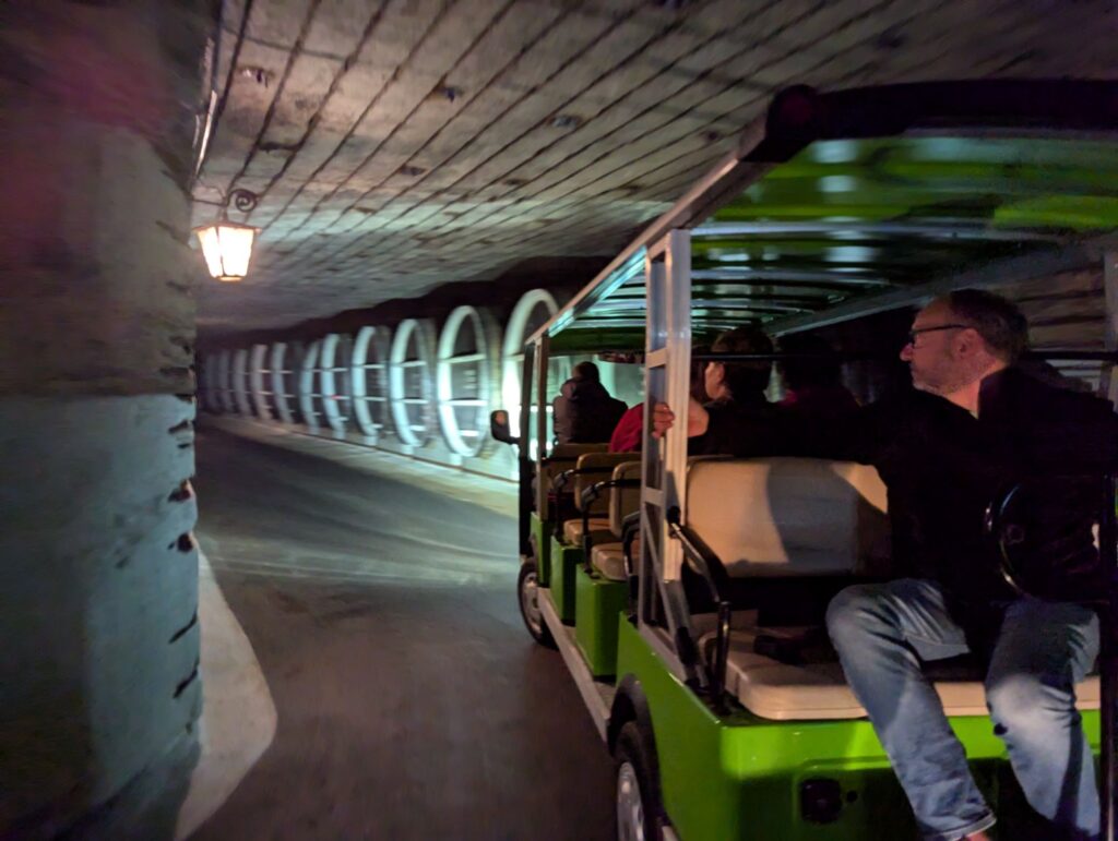 Das Weingut Mileștii Mici verfügt über ein etwa 55km langes ausgebautea Tunnelsystem, in dem aktuellen über 2 Millionen Weinflaschen lagern. Insgesamt ist das Tunnelsystem sogar 200km lang und ist durch den Abbau von Kalksteinen entstanden, die zum Hausbau genutzt wurden. Mit einem elektrischen Minizug konnten wir durch einen kleinen Teil der Gänge fahren und zahlreiche Weinlagerstätten sehen. In einem der Abschnitte ist es möglich private Lagerkammern zu mieten, so hat hier zum Beispiel der deutsche CEO von autodoc oder der Präsident von Benin eine Weinlagerstätte. Im Tunnel gab es auch einen künstlich angelegten Wasserfall, einen aufwendig geschmückten Bereich für Weinverkostungen, Toiletten und sogar W-LAN Empfang. Am Ende der Tour gab es für jeden noch eine Weinflasche, die wir Zuhause verkosten werden.