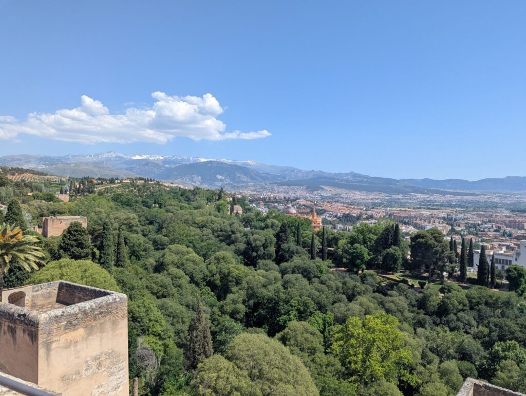 Am Donnerstag starteten Sina und Fabi auf einen Ausflug zu zweit. Mit Blick auf das Gebirge Sierra Nevada fuhren wir einige Stunden bis zur Stadt Granada. Die Stadt selbst schauten wir uns allerdings gar nicht an, denn hier befindet sich eine der größten Touristenattraktionen Europas: die Alhambra.