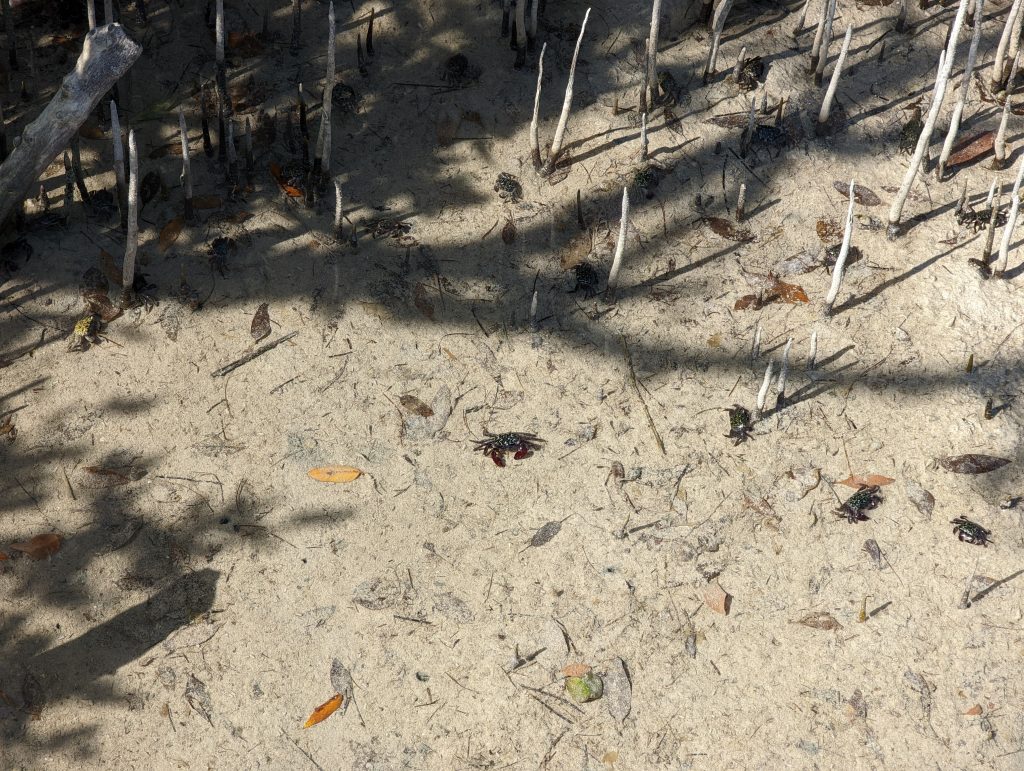 Ganz in der Nähe des Zentrums von Abu Dhabi besuchten wir den Jubail Mangrovenpark. Auf Holzstegen konnten wir die Bäume, kleine Krebse, Fische und Vögel betrachten. Am Ende waren wir allerdings auch froh, wieder der prallen Sonne entfliehen zu können. Andere Touristen gab es hier übrigens auch mal wieder kaum.